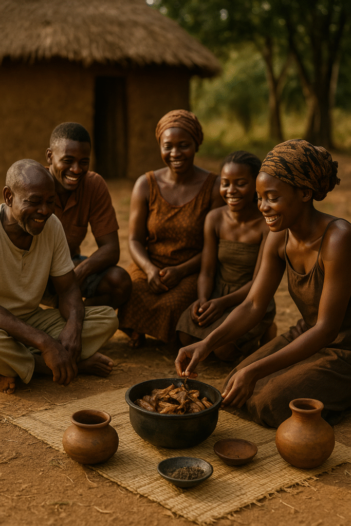 Then anger overcame the man, and he went himself and found the guinea-fowl in the line. The guinea-fowl addressed his same song as before. But the man seized the guinea-fowl firmly, and the guinea-fowl said to him, “Though you seize me, seize me: here in the evening I shall seize mine.”